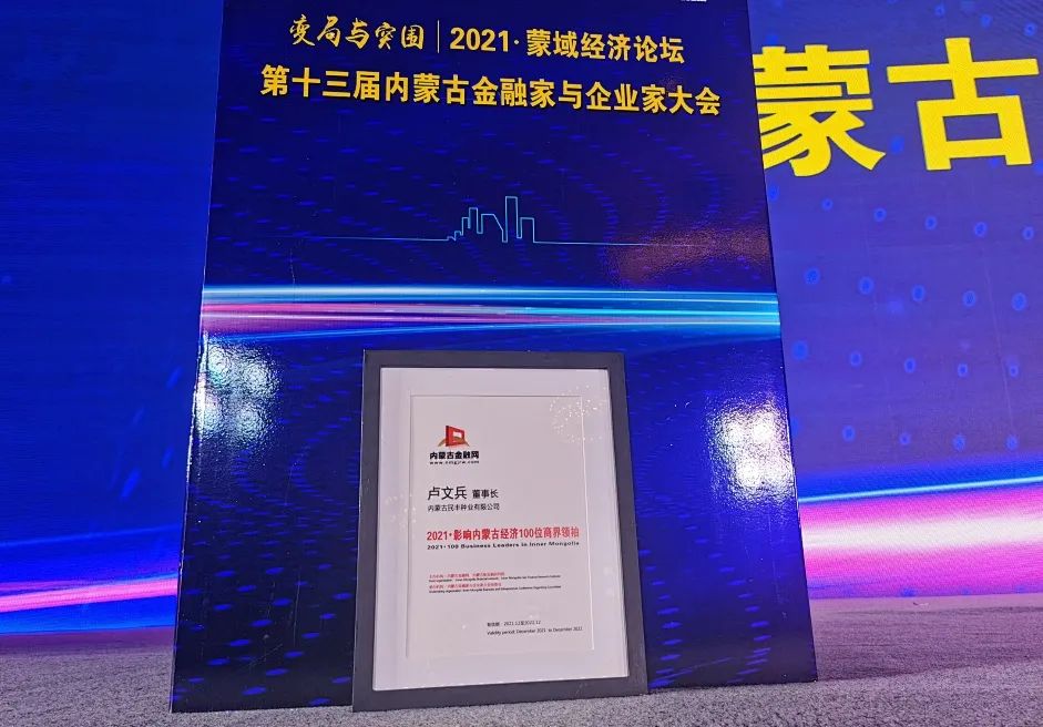 本次大會評選了一批新經濟時代各個行業(yè)的優(yōu)秀企業(yè)家,旨在弘揚企業(yè)家精神、樹立內蒙古經濟榜樣人物。榜單是以企業(yè)“管理團隊、品牌價值、商業(yè)模式、永續(xù)發(fā)展“為維度進行評估。作為內蒙古金融領域佼佼者、農業(yè)領域創(chuàng)新者,盧文兵先生從影響力、貢獻力、發(fā)展力、經營力、創(chuàng)新力等多方面都體現(xiàn)了商界人物的人格魅力。他憑借誠信、創(chuàng)新、堅持、進取的匠人精神,被評選為2021影響內蒙古經濟100位商界人物榮譽稱號。